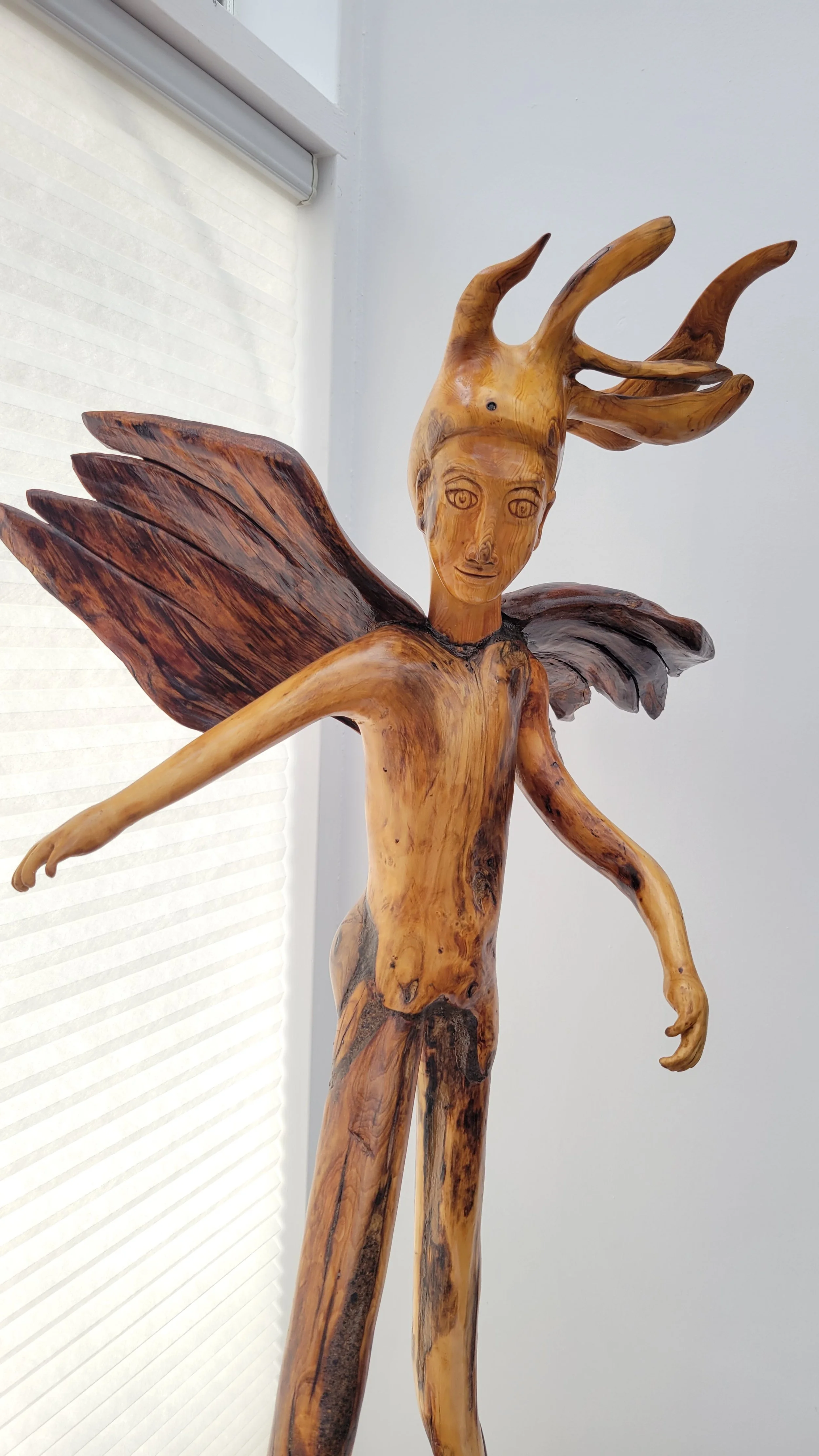 Winged Victory (sold!) Carved from a driftwood log to represent the statue of the same name in the Louvre, Paris. (16” tall)